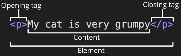 • ์์(Element): ์ฌ๋ ํ๊ทธ, ๋ซ๋ ํ๊ทธ, ๋ด์ฉ์ ํตํ์ด ์์(element)๋ผ๊ณ ํฉ๋๋ค.