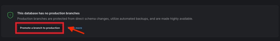 Promote a branch to production ๋ฒํผ์ ํด๋ฆญํ๋ฉด main branch๊ฐ production์ผ๋ก ์ค์ ๋ฉ๋๋ค.